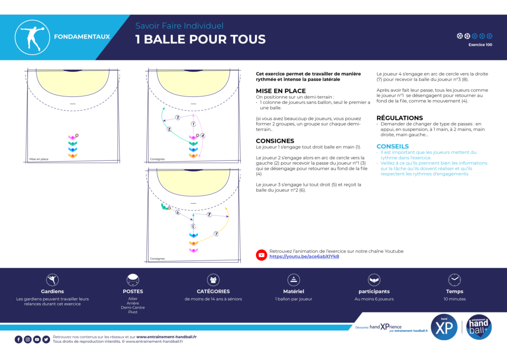 Après avoir fait leur passe, tous les joueurs se désengagent pour retourner au fond de la file, comme le mouvement (4).