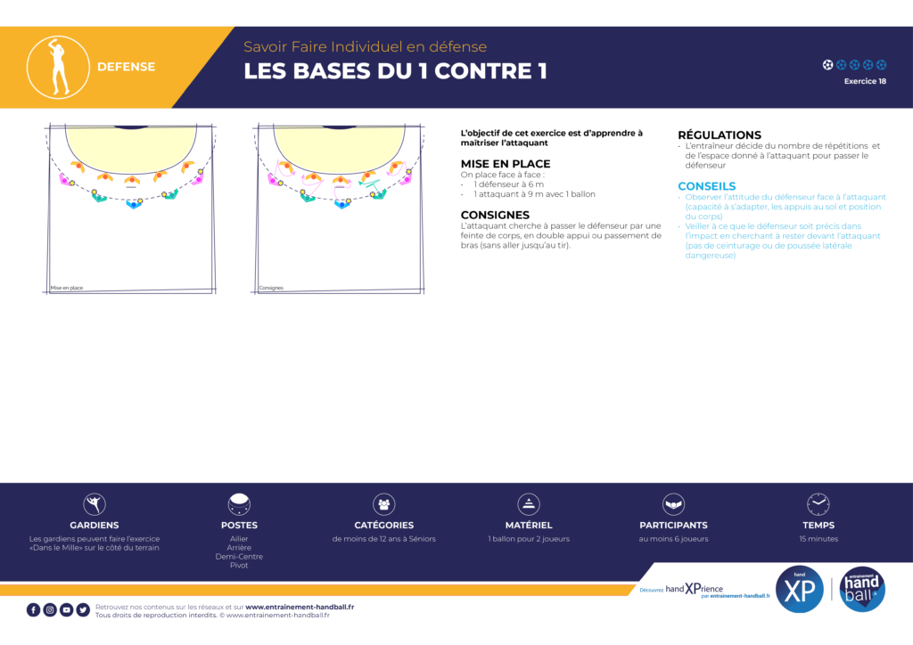 – Veiller à ce que le défenseur soit précis dans l’impact en cherchant à rester devant l’attaquant (pas de ceinturage ou de poussée latérale dangereuse).