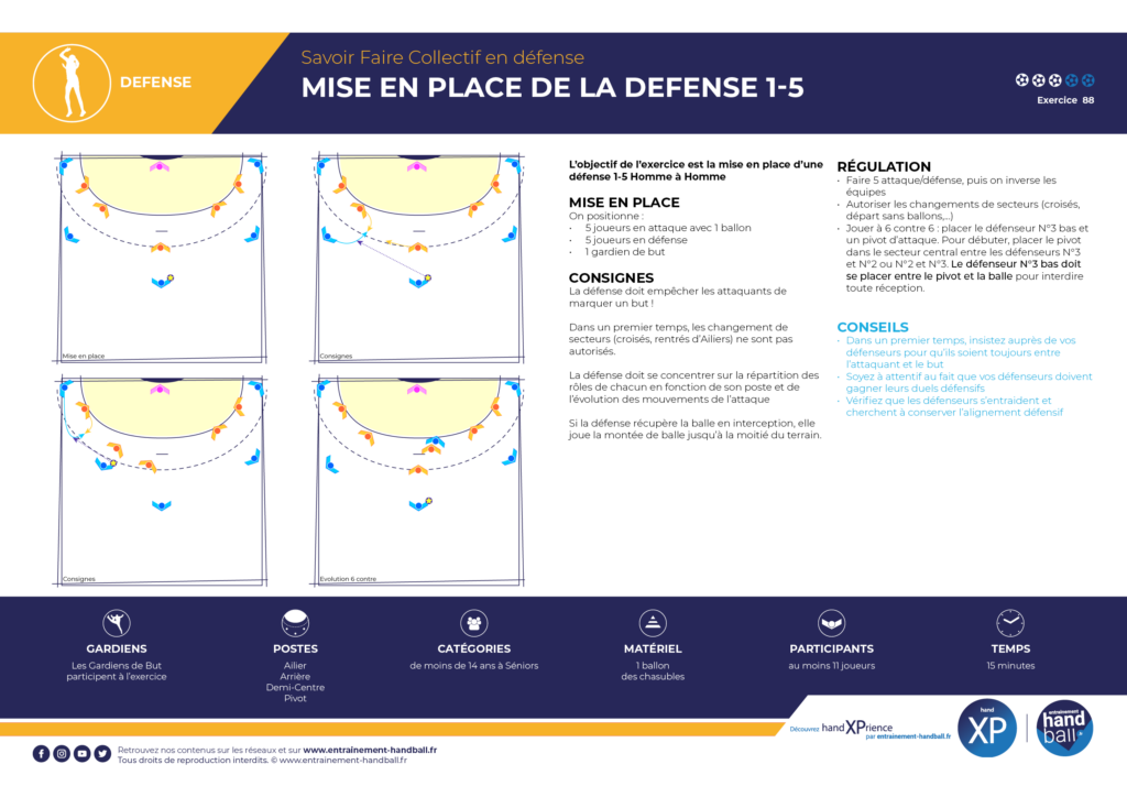 L’objectif de l’exercice est la mise en place d’une défense 1-5 Homme à Homme.