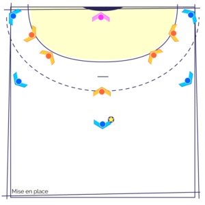 L’objectif de l’exercice est la mise en place d’une défense 1-5 Homme à Homme.