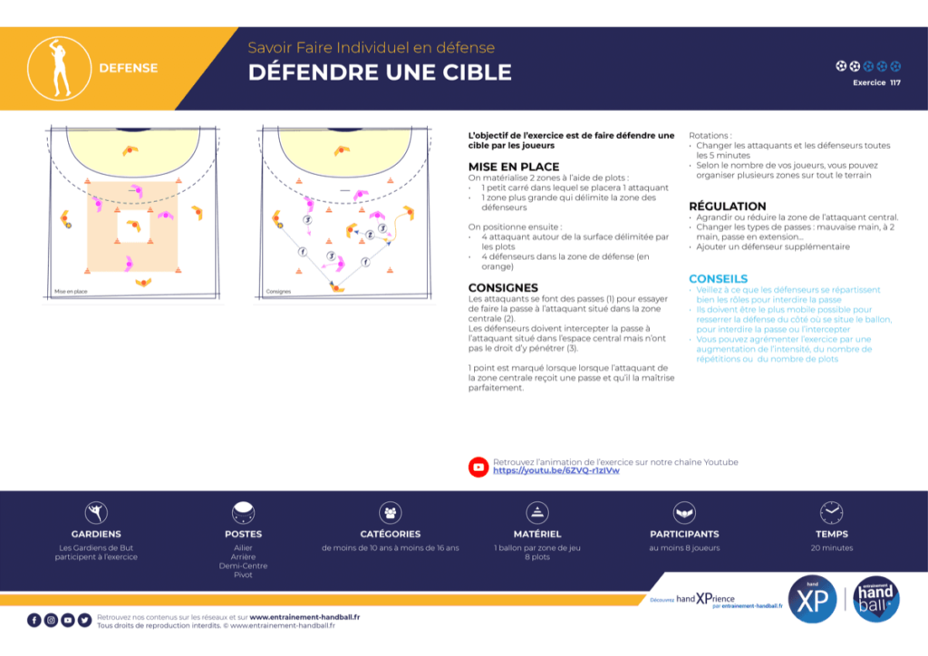 L’objectif de l’exercice est de faire défendre une cible par les joueurs.