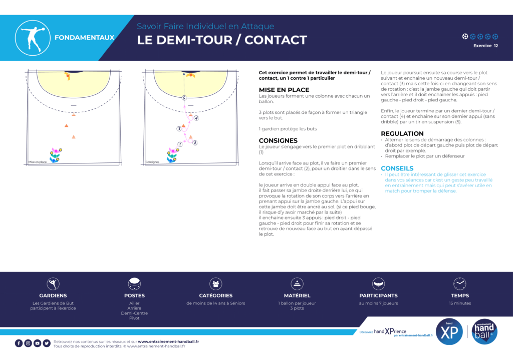 – Il peut être intéressant de glisser cet exercice dans vos séances car c’est un geste peu travaillé en entraînement mais qui peut s’avérer utile en match pour tromper la défense.