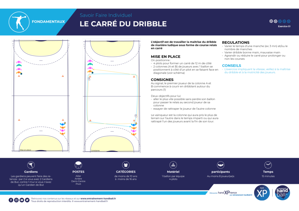 – L’exercice impliquant la vitesse, veiller à la maîtrise du dribble et à la motricité des joueurs