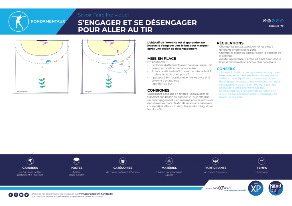 – Veillez au bon équilibre du joueur lors de son désengagement et à sa bonne orientation dans l’engagement au tir : il doit toujours avoir les appuis et le torse orientés vers le but