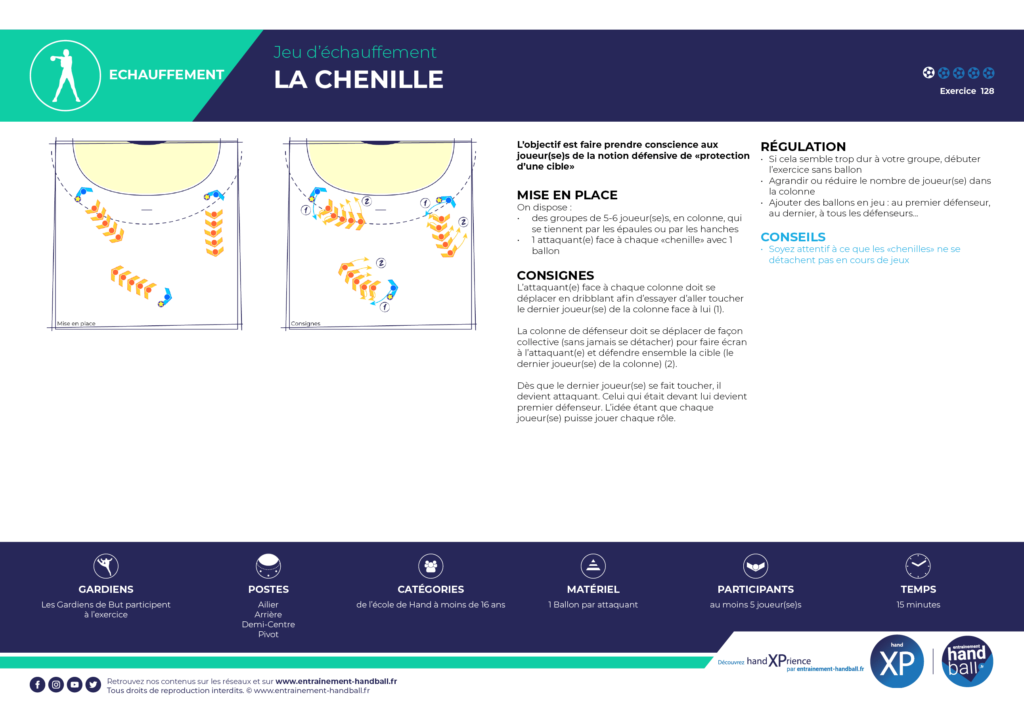 – 1 attaquant(e) face à chaque «chenille» avec 1 ballon