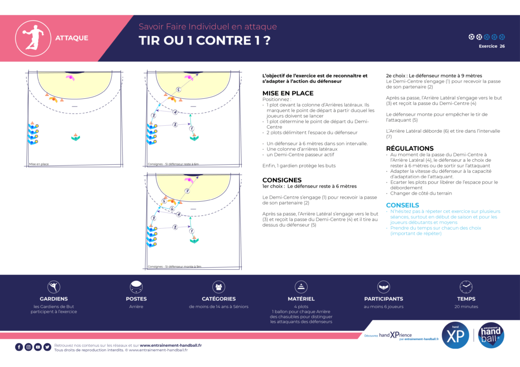 – N’hésitez pas à répéter cet exercice sur plusieurs séances, surtout en début de saison et pour les joueurs débutants et moyens