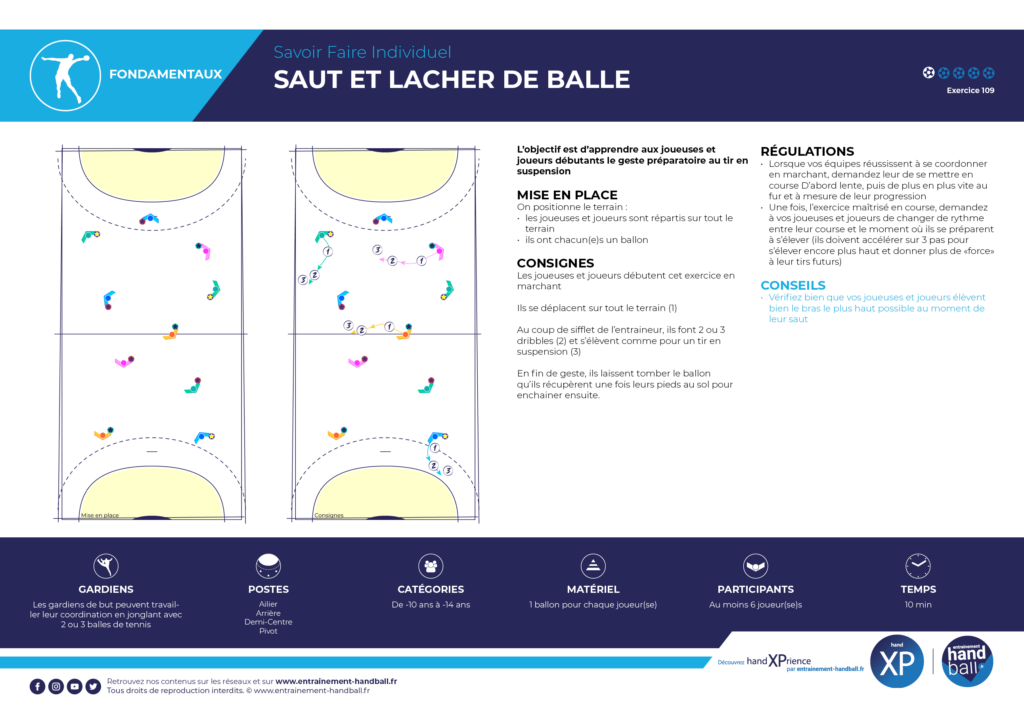Apprendre aux joueuses et joueurs débutants le geste préparatoire au tir en suspension.