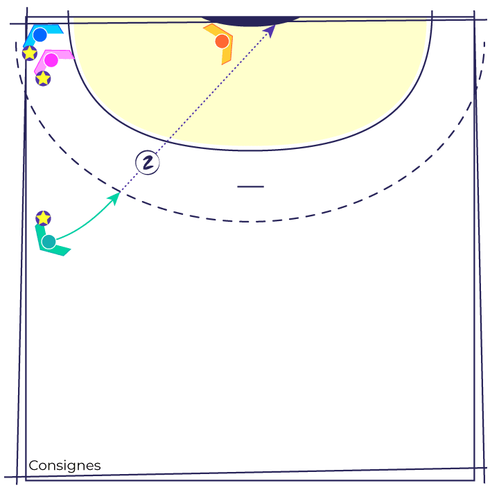 – Imposer des contraintes sur les tirs : en dehors des 9m, à rebond, roucoulettes à l’aile…