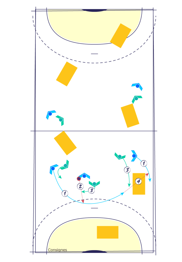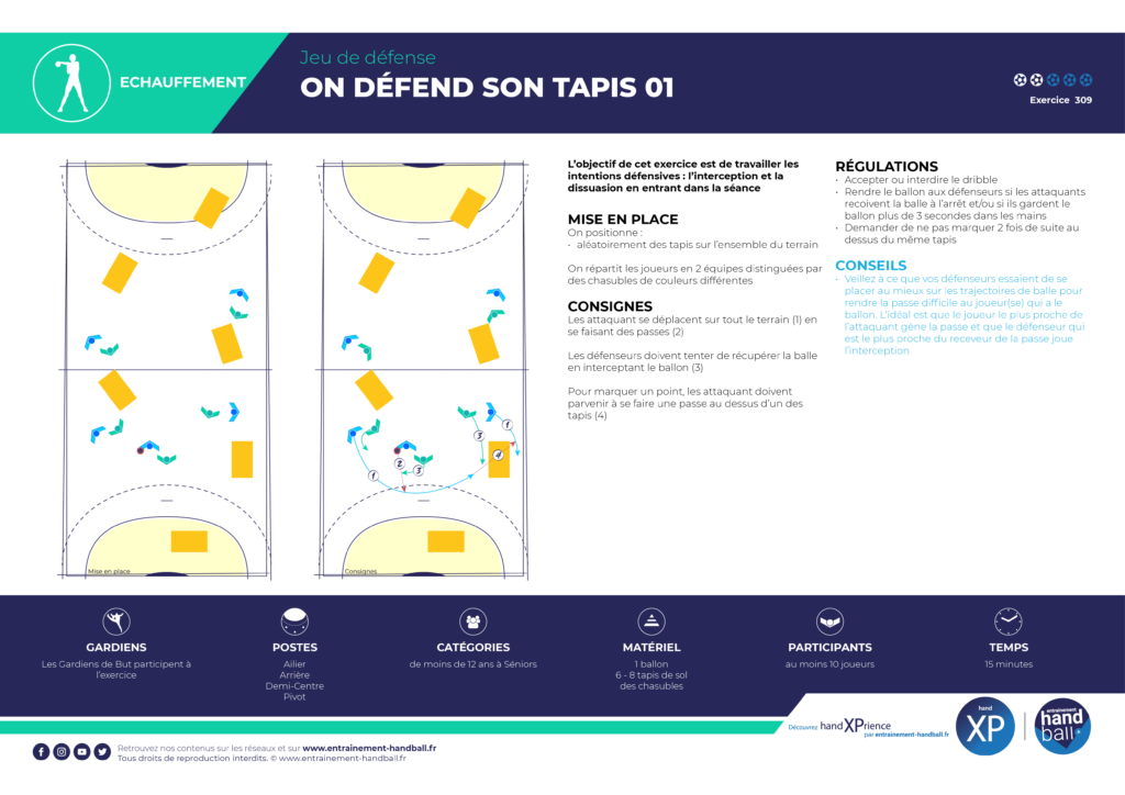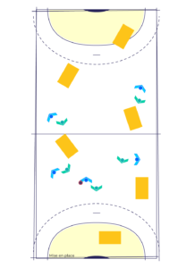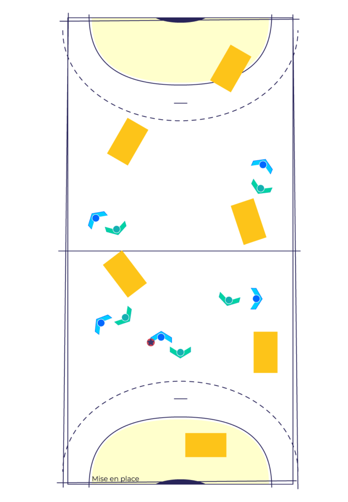 L’objectif de cet exercice est de travailler les intentions défensives : l’interception et la dissuasion en entrant dans la séance.