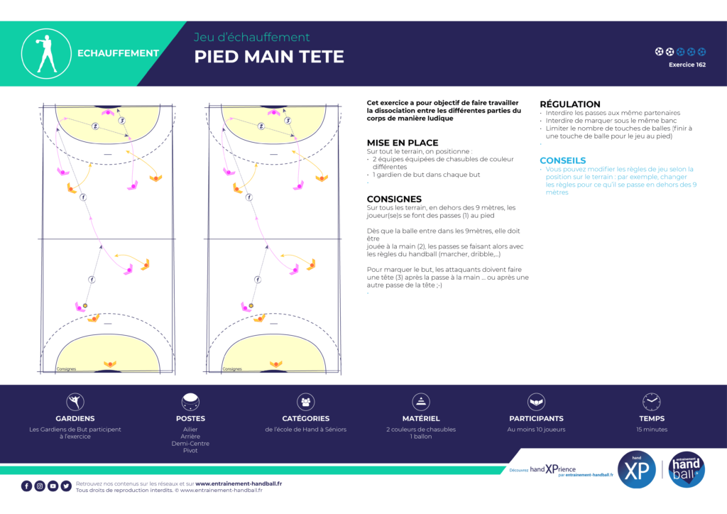 – Limiter le nombre de touches de balles (finir à une touche de balle pour le jeu au pied).